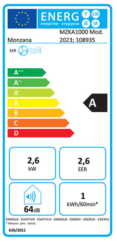 - Extra leiser Betrieb mit 42-66dB(A), 0,9kW Kühlleistung und 3.000 BTU/h